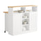 Ta kuhinjski voziček je opremljen s tremi predali in omarico z vrati, kjer lahko shranite na primer kuhinjske pripomočke.