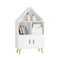 Za vrati so tri particije, knjižnica je kot nalašč za prikaz najljubših plišastih, knjig ali LEGO zgradb.